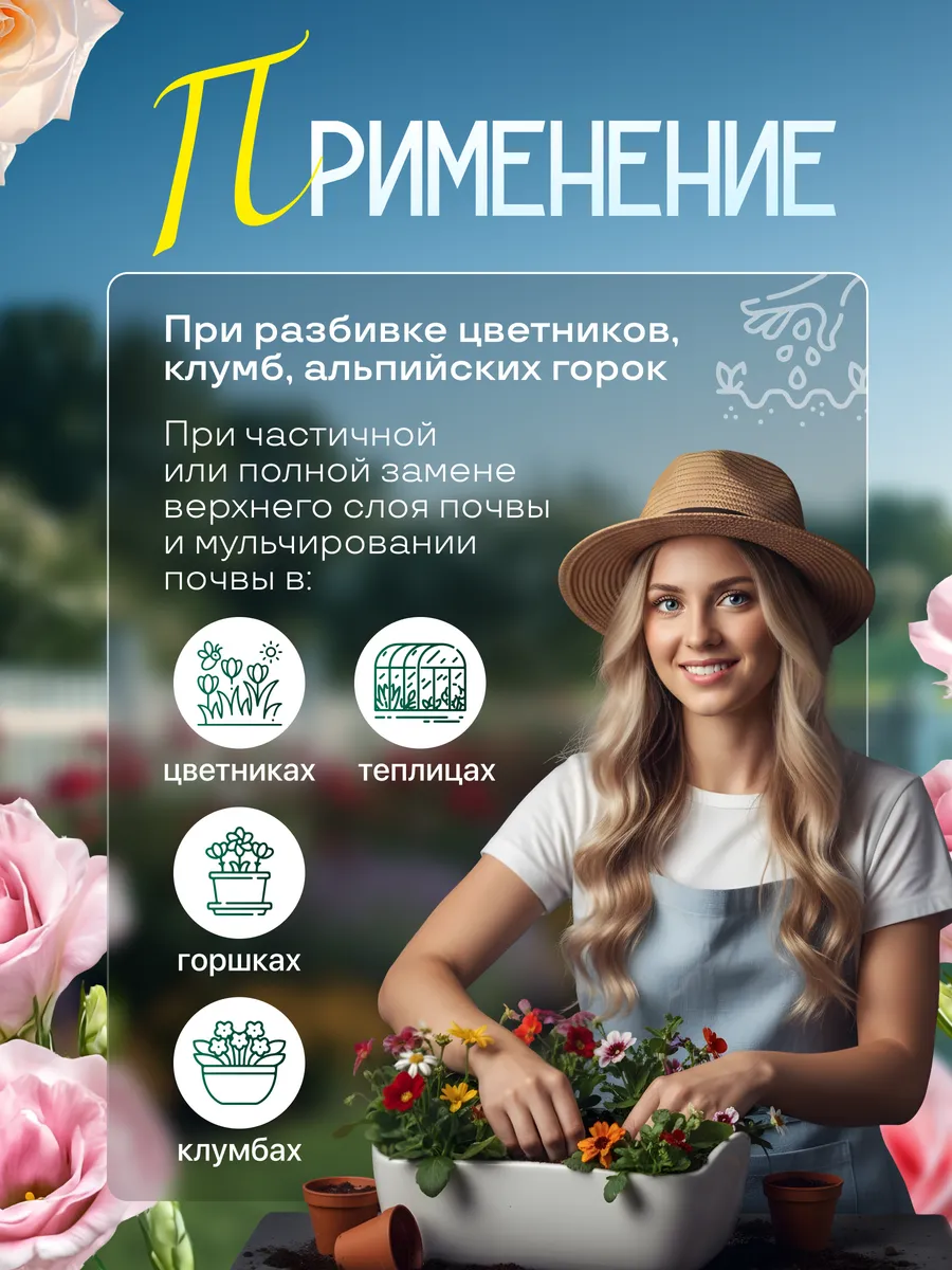 - Большой объем 20 л: экономичная упаковка для масштабных работ — пересадки, создания клумб, заполнения крупных вазонов.