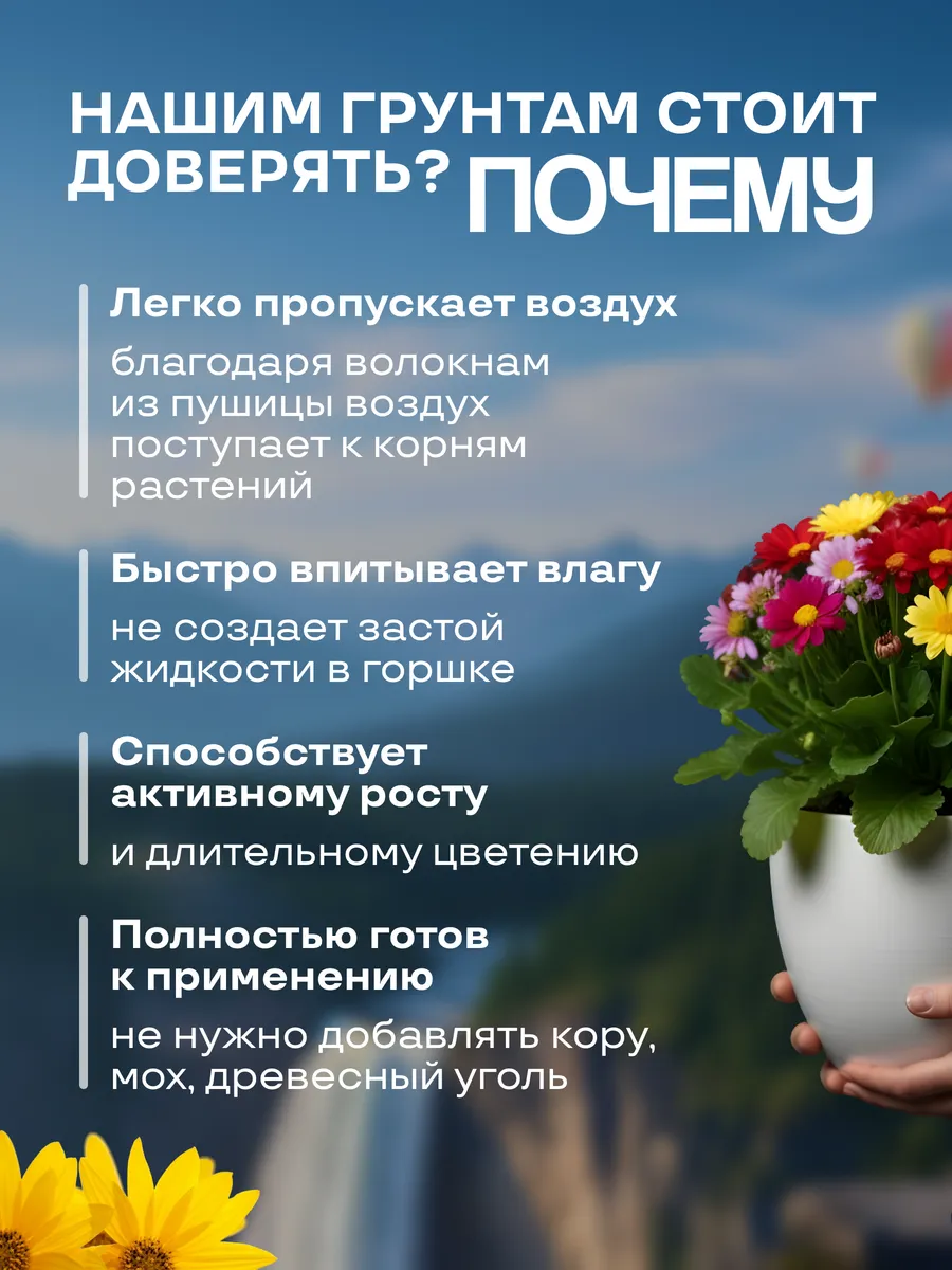 - Универсальность применения: Одной упаковки достаточно для посадки нескольких деревьев, кустарников, заполнения высокой грядки или обновления почвы в большой теплице.