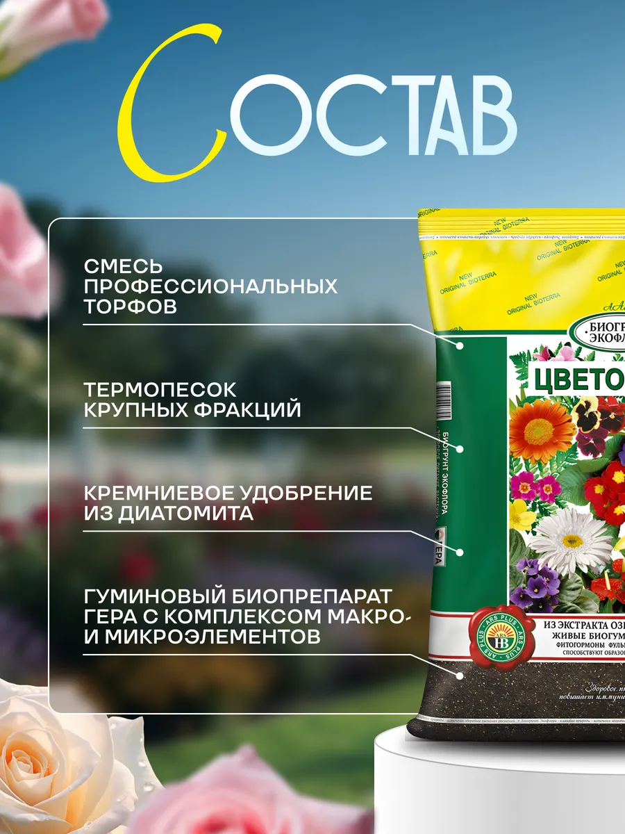 Биогрунт способствует здоровому питанию растений, улучшает их декоративные свойства, обеспечивает насыщенную окраску цветов и листьев. Он стимулирует полноценное развитие, активный рост и продолжительное цветение, а также поддерживает естественный иммунитет растений благодаря содержанию органического гумуса.